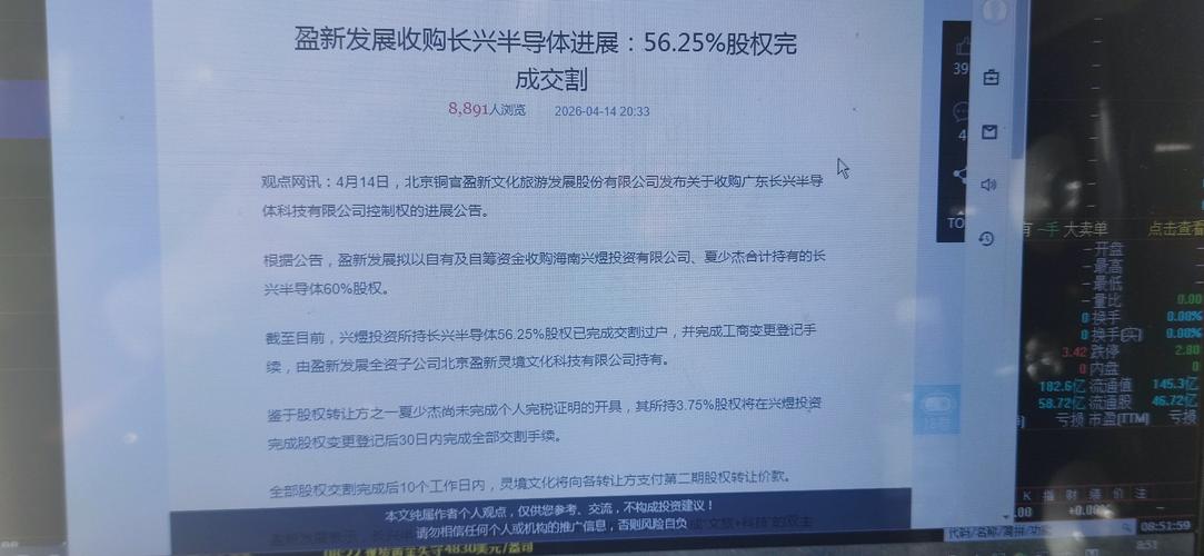 资讯 盈新发展:关于收购广东长兴半导体科技有限公司控制权的进展公告