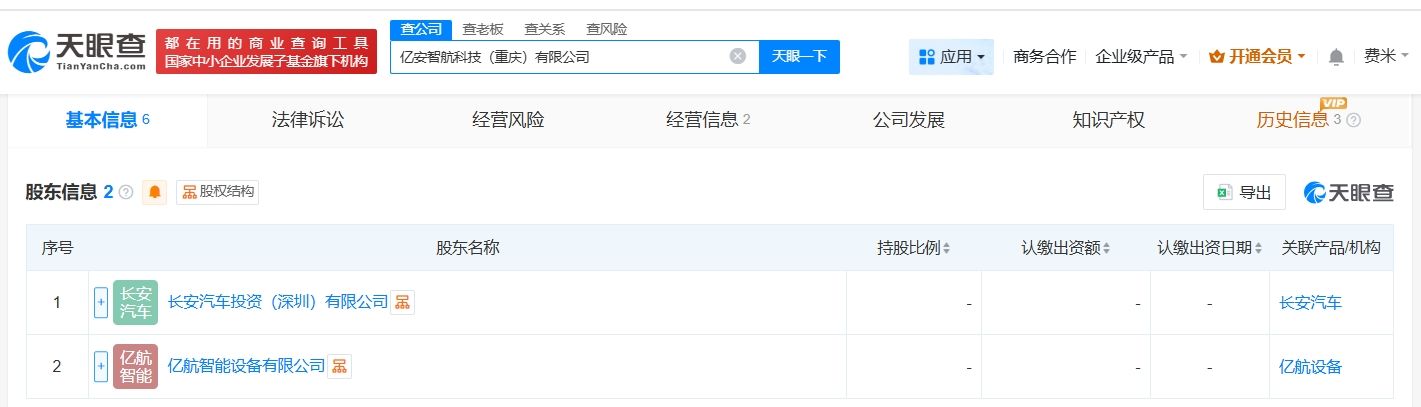 长安汽车、亿航智能在重庆成立科技公司 注册资本1亿