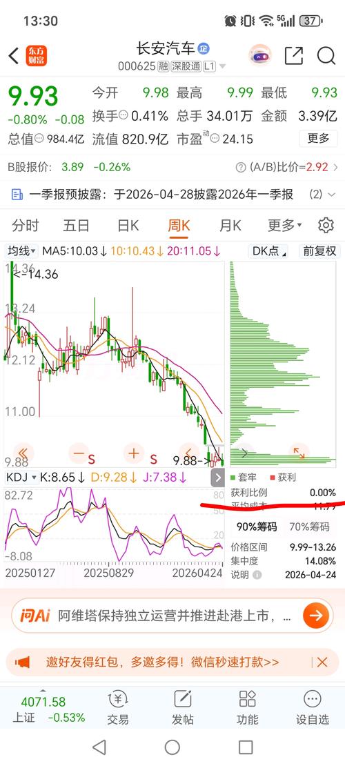 $长安汽车(SZ000625)$乘用车板块唯一一个周线获利筹码为0的车企!