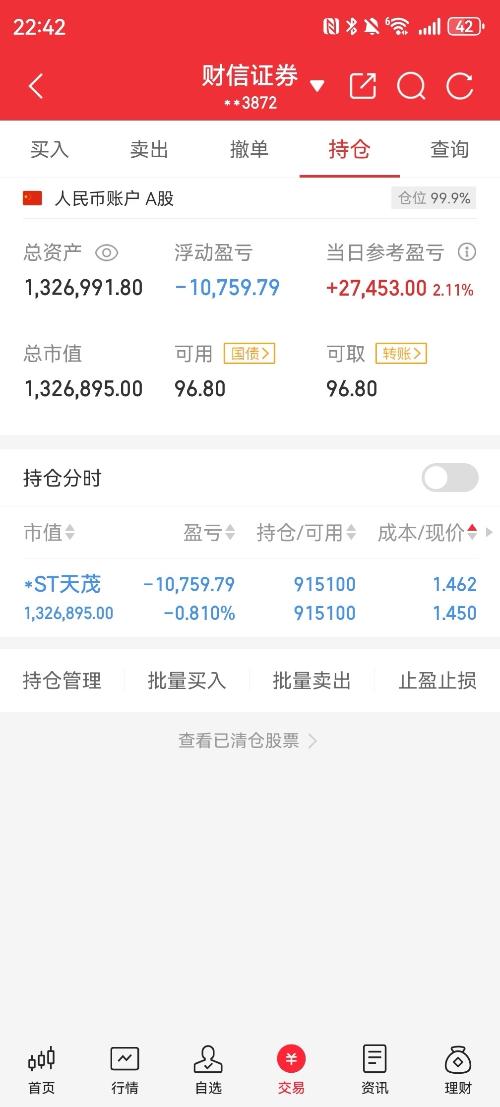 $*ST天茂(SZ000627)$ 1、退市 深交所已经同意公司终止上市,五个交易日内股票将在主板摘牌,也就是说五个交易日内,*ST天茂股票将从你的股票账户中消失。 有的券商如东财可以在"退市股查询"一栏提供查询,有的券商没有退市股查询功能,这个股票就从账户中暂时消失了。那什么时候还会再出现?别急,确权之后就会又在账户中的股转一览出现。 2、确权 股票从主板摘牌后将去三板的"两网及退市"板块交易。...