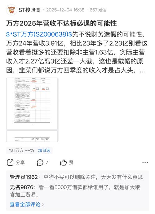 $*ST万方(SZ000638)$去年就在万方连续提醒了个把月一些不信的说我唱空,我之前就说过吹票的斯沟吹能把韭菜直接挂山顶甚至本金清零,而唱空的最多让你吃不了大肉而已