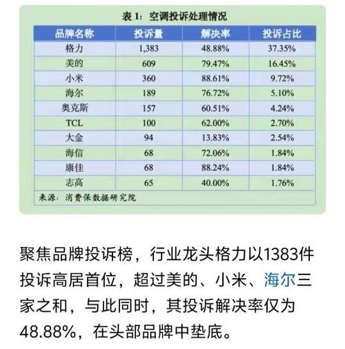 格力空调销量一般今年市占率只有16%,但格力投诉可是真的多啊占了全行业37%!投诉解决率居然只有48%,买格力空调就是智商税价格贵质量差!$海信家电(SZ000921)$$格力电器(SZ000651)$$美的集团(SZ000333)$