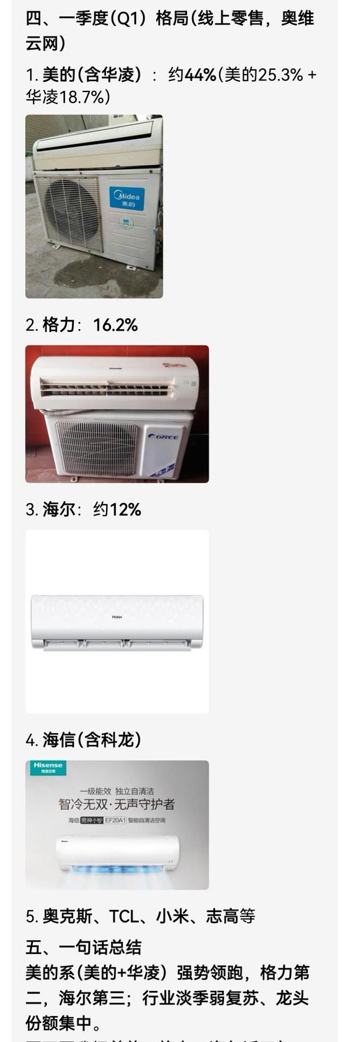 一季度空调市占率美的副牌华凌空调居然排名炒股格力