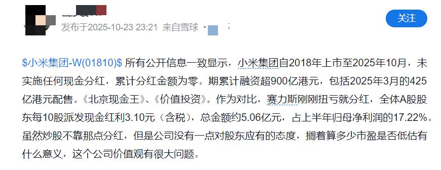 $格力电器(SZ000651)$$小米集团-W(HK|01810)$ 股民甲:分红,大股东分得多。 股民乙:股价上涨,大股东赚得多。 股民甲:分红大股东分得多,我有意见。股价上涨大股东赚得多我没意见。 股民乙:分红大股东分得多,我没意见。股价上涨大股东赚得多我也没意见。 股民甲:我炒不分红的股,炒赢那七个亏损的。 股民乙:我买分红的股,躺赢那七个亏损和二个平手的。 股民甲:股价上涨,大股东能成首富...