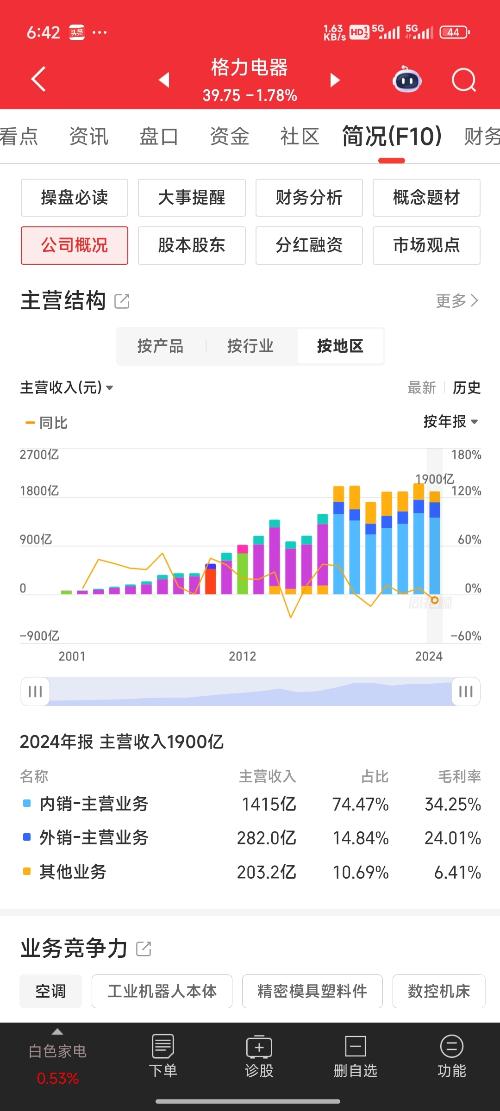 $格力电器(SZ000651)$$海尔智家(SH600690)$$美的集团(SZ000333)$赚国人的钱,国内卖的比国外贵,有什么本事?!!!国内毛利率34%,国外24%,国外仅仅占比14.84%,提高国外收入还大有可为。你看看同行, 就拿2024年财报来说,美的海外41.32%,海尔49.97%;tcl73.5%;长虹都有22.93%。 不要让人家说你,内战内行,外战外行!!