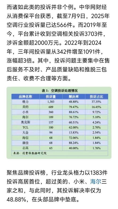 $格力电器(SZ000651)$$海信家电(SZ000921)$$小米集团-W(HK|01810)$格力空调质量差被投诉上榜,格力空调制热差更是通病,江浙沪和中部地区冬天很冷没有集中供暖开2个月暖空调是标配,格力空调不制热效果不好这个顽疾很被动。被投诉多了口碑自然下滑。