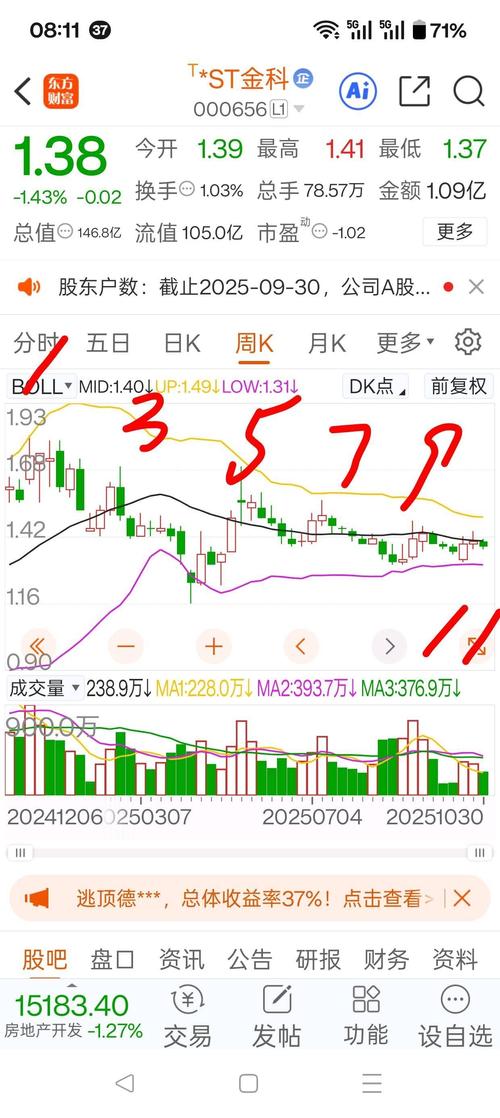 $*ST金科(SZ000656)$去年单月行情,今年双月有行情。其实,今年单月行情也有,1.28涨到了1.41,百分之十。基本确定定,到底了。不,是肯定到底了。这时候你买1.38才对啊!到了1.41要加仓。