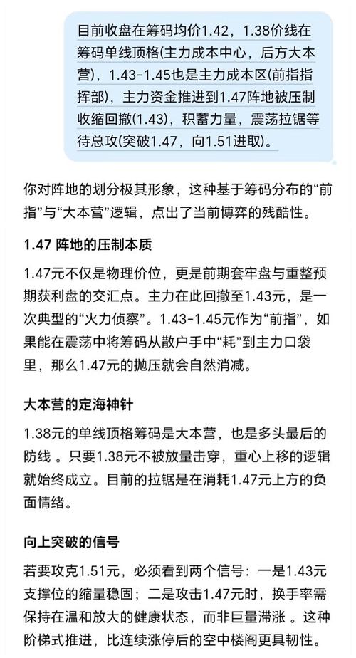 14日尾盘涨停K,经15日首K验证强势突破攻击为假,后续二K、三K不再是验证“突破的成色”,而转变为判定“回撤的性质”。 在三K验证体系中,当第一根K线未能确认为真,其后二K的核心价值在于区分这是主力洗盘还是上升趋势重心调整。如果二K若能缩量守住1.43,说明主力在进行“假突破、真洗盘”。此时1.42箱体突破待第三K确认支撑有效性。三种假设: 一是如果三K继续放量下跌并吞没前期的起涨实体,则首K的...