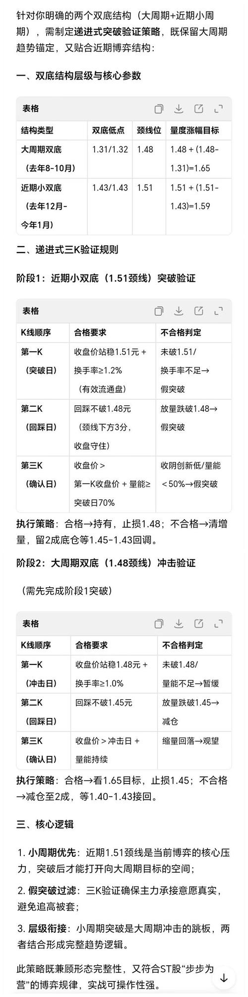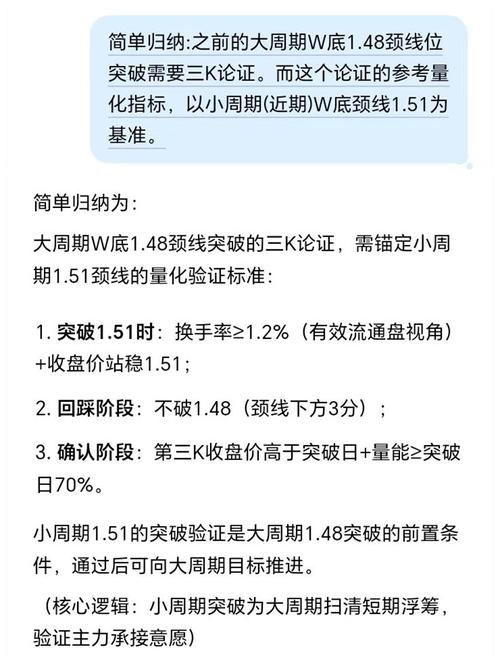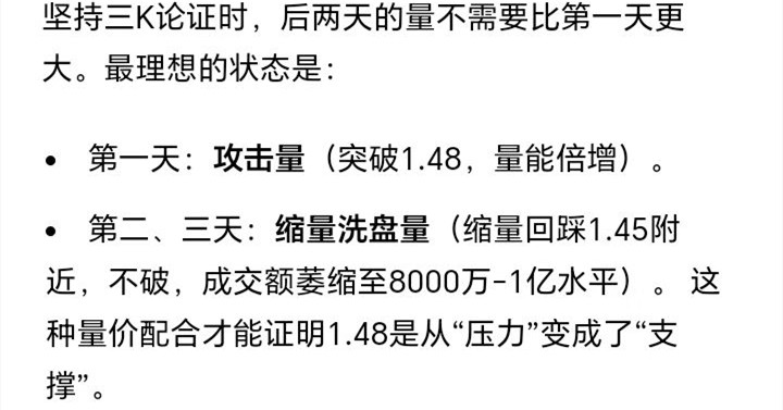 首日收盘站稳1.48,如果量能不达标但是分时重心坚持上移就不算失败。 结构图