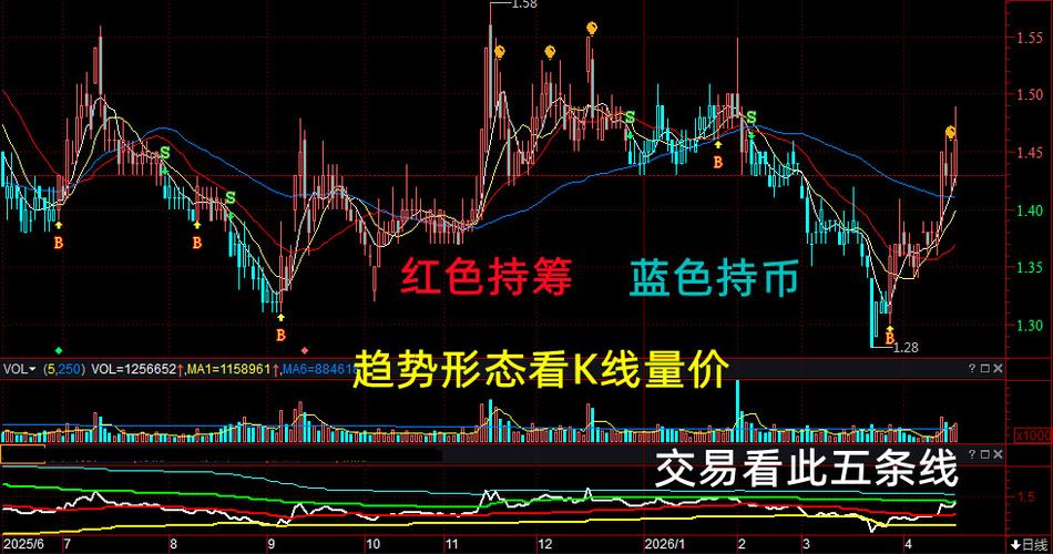我的软件很简单,K线只分区域两种颜色,红域持筹,蓝域持币,交易按部就班五条线