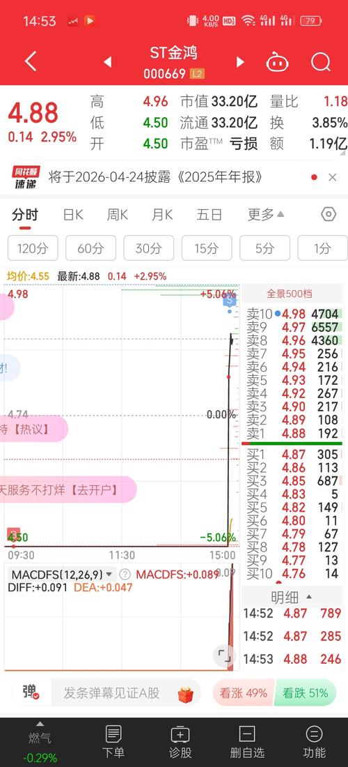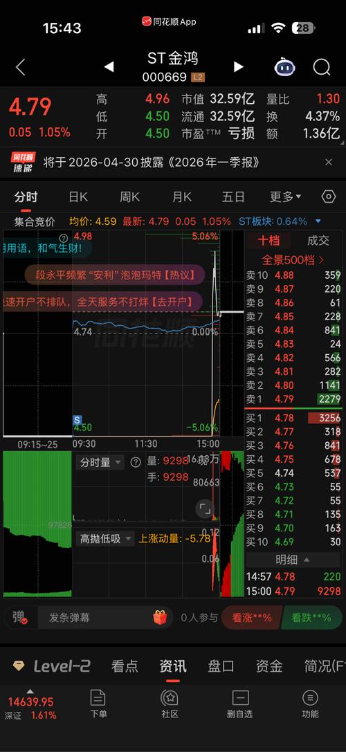 $ST金鸿(SZ000669)$是昨天下午挂的卖单4.95,今天尾盘才出来!狠人!还好比昨地板价卖的都高!3秒吃了15万,狠绝!