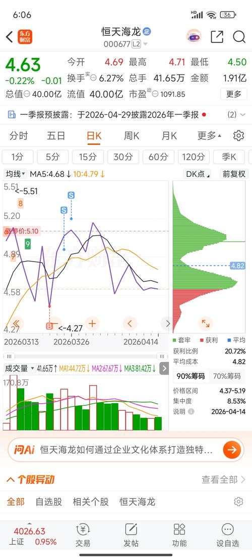 $恒天海龙(SZ000677)$ 前买点4.49,上一轮买入后分批在涨停板卖出。可惜今日挂单4.49未成交,差了一分钱。目前这位置是前期超买筑底区,有一定的安全边际。近期保持观察吧