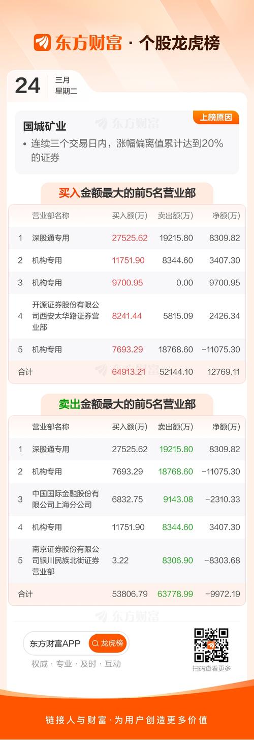 资讯 国城矿业:融资净偿还1362.59万元,融资余额3.54亿元