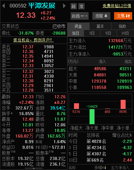 各位股友大家好!!!我是老马,今天这种行情其实不复杂,看承接,看关键位,守不住就收手,有反弹就做差价,节奏比方向更重要。虽然我们认识时间不长,但一路看下来的朋友应该能感受到老马的思路,是有逻辑有节奏的。 不敢说每天都能带大家赚钱,但把节奏做好,小亏大赚是完全可以做到的。至于今天的早盘,有些股友可能没来得及看,没关系,先点赞收藏,慢慢往下看。 $平潭发展(SZ000592)$低开走弱,开盘12.31...