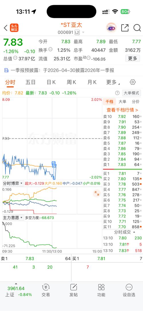 $*ST亚太(SZ000691)$彭家估计在出货了,每天都是超大单
