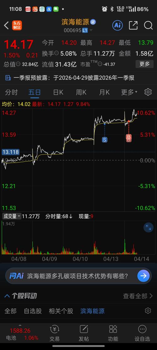 $滨海能源(SZ000695)$一季报收入会不会大幅提升呢