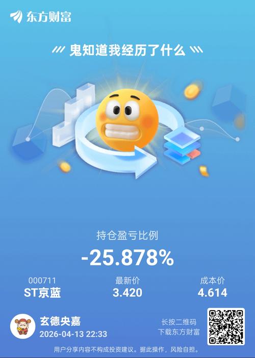 $ST京蓝(SZ000711)$风雨过后是彩虹:ST京蓝,坚守价值,静待花开! 近期,ST京蓝(000711)股价连续下挫、多日跌停,市场恐慌情绪蔓延,不少投资者陷入焦虑与迷茫。但越是市场剧烈波动时,越需要保持理性与定力。拨开短期涨跌的迷雾,我们看到的是一家正在战略转型、卡位核心赛道、蕴藏长期潜力的企业,短暂的阵痛,正是价值重塑的契机! 一、连续回调,是情绪宣泄,更是理性回归 此轮连续跌停,并非公...