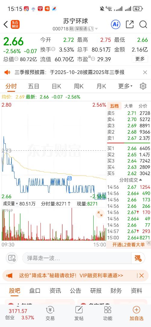 $苏宁环球(SZ000718)$上波顶部三块多的一个亿资金的大宗交易真的是进来搞笑的吗?就是看有这大宗交易,又突破了2.74,以为能启动了,结果我傻傻的2.85进来站岗