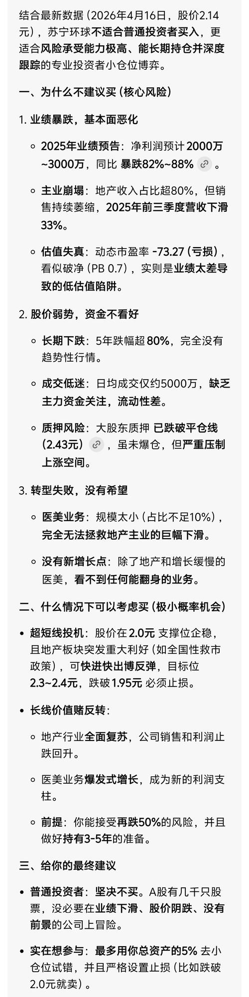 $苏宁环球(SZ000718)$ 直接说结论: 栖霞建设:有机会冲涨停,但不是稳板,概率大概40%~50% 苏宁环球:很难涨停,概率10%都不到,顶多大涨3%~5% 下面简单讲原因(不绕弯): 一、栖霞建设(600533):最像涨停的一个 为什么有机会: 南京公积金新政4.16刚出,强催化 直接利好本地小地产,资金最爱炒这种。 盘子极小:总市值才26亿,流通盘更小,拉涨停不需要太多钱。 历史上经常...