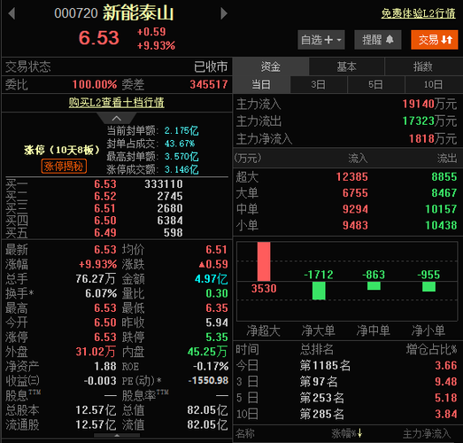 #钠离子电池重大突破:彻底阻断热失控# 新能泰山:个股在昨天调股向上,再次收出涨停,在过去的三个交易日收出涨停板,也是近10个交易日收出8个涨停板的走势,核心逻辑还是属于现在的光纤光缆的涨价。目前的核心逻辑上,现在随着光纤光缆涨价,而且当前的涨价预期超出了整个市场的预期,所以板块内部形成了补涨。相关只有小部分业务的公司也在此因素影响之下,迎来了一波连板的主升浪潮。个股也充分...