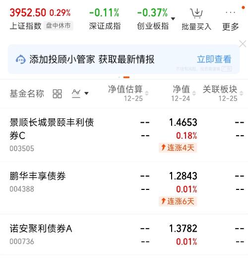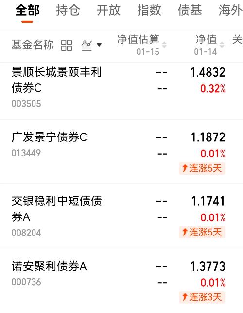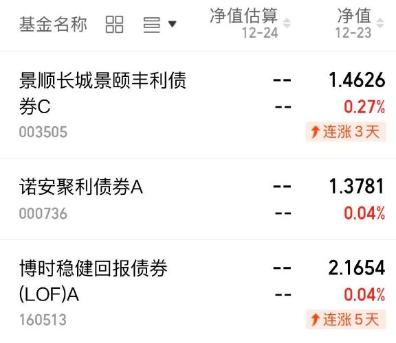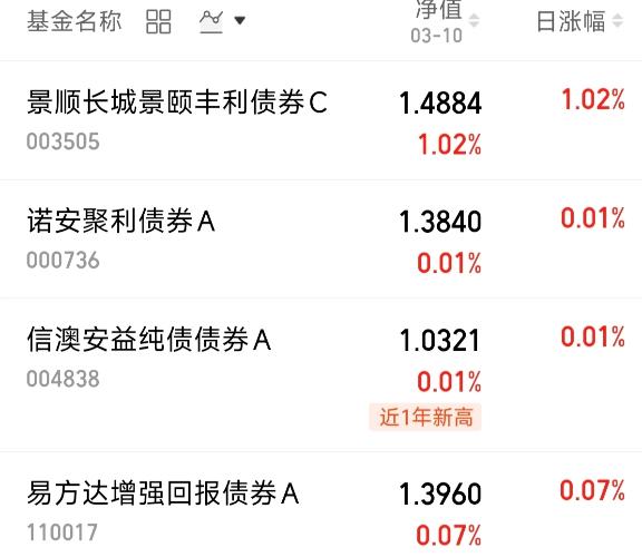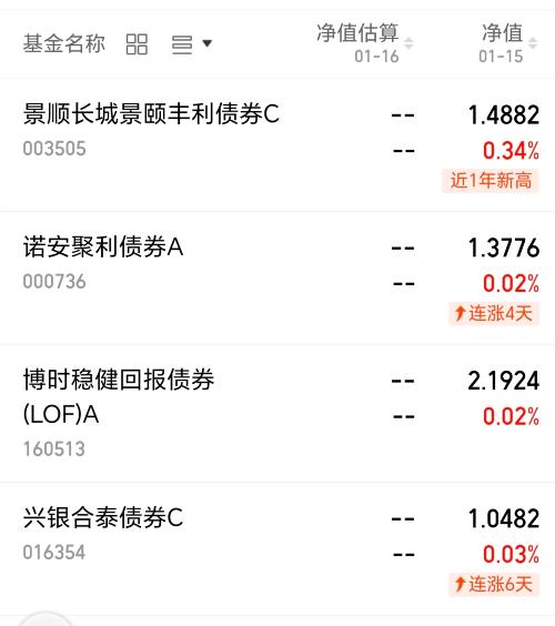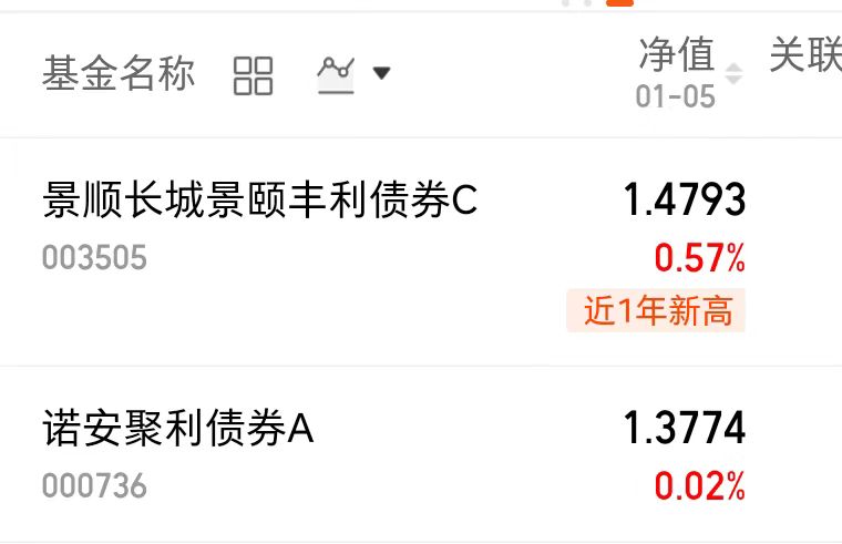近期股债两市同步走暖,这只基金顺势实现四连涨,涨幅远超同类混债竞品,在当下震荡市中稳稳跑出超额收益,妥妥的混债赛道优等生。$景顺长城景颐丰利债券C(OTCFUND|003505)$昨日收了18个蛋,$鹏华丰享债券(OTCFUND|004388)$昨日收了1个蛋,$诺安聚利债券A(OTCFUND|000736)$收了1个蛋。