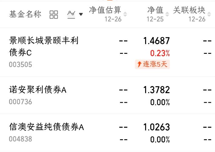 最近几天股市行情可真不错,连续上涨,债市行情也是时不时回暖,总体表现不错,所以最近混债基表现亮眼!$景顺长城景颐丰利债券C(OTCFUND|003505)$连涨5天,昨日收蛋23个,涨超其他混债。$诺安聚利债券A(OTCFUND|000736)$昨日收蛋0个$信澳安益纯债债券A(OTCFUND|004838)$昨日收蛋0个#我的养基小心机##挖掘超额收益#