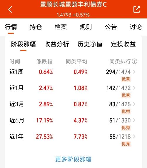 #商业航天赛道爆火:2026年行业或迎质变#债市因为财政政策消息面上的原因有所回调,很多固收+都跌了,而景颐丰利涨超其他混债,唯它继续上涨,确实给力$景顺长城景颐丰利债券C$