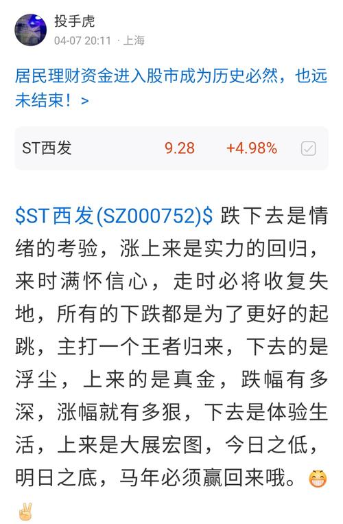 $ST西发(SZ000752)$这几个鸟人怎么不说话了,都跌到这个价了S鸟还唱空