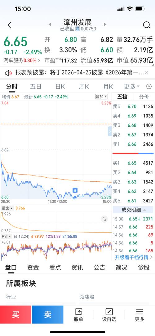 $漳州发展(SZ000753)$这走势得小心业绩,别急着进。