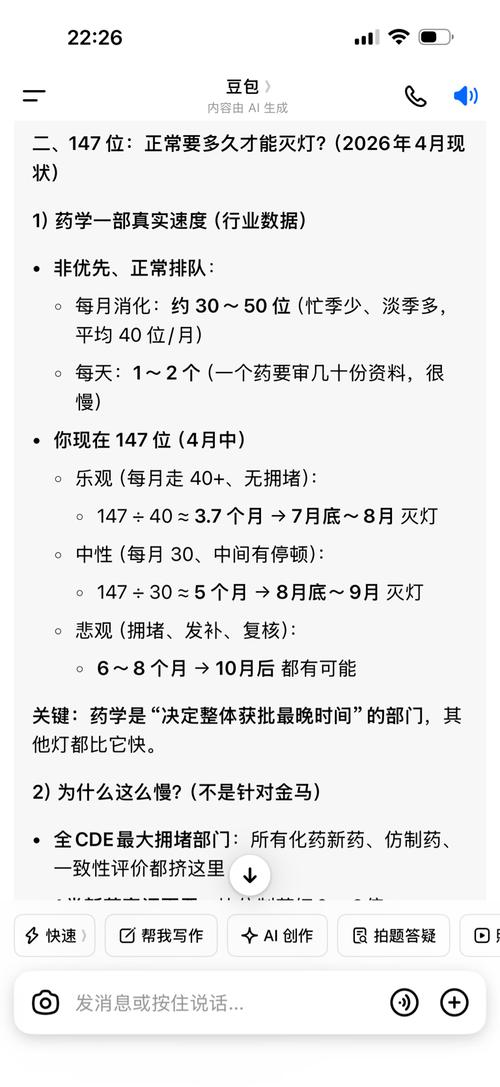 排在前面的恒瑞的药理毒理没灭,先把通化的给灭了,真是意料之外的,下周合规处的灯给灭了,剩下的化药药学实际排119位,15天,月底有望灭灯,统计与临床实际排107位,用时差不多。药理实际排75位,各位老铁们,本月有望全灭灯,通化金马估值几何,中国有1700万,未来老龄化越来越多,每人每天4mg,24片装每盒定价300元,每年15盒,约4500元,如果有170万人使用,销售额将达到76亿,按净...
