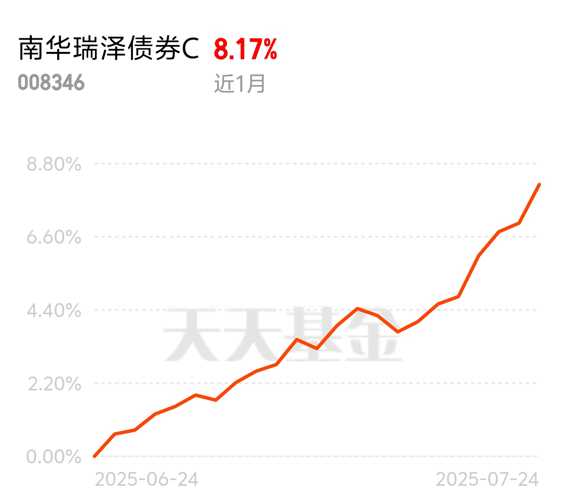 市场呈现股市走强,债市收益不高,瑞泽固收+亮眼。股票涉及红利股,债部分聚焦反内卷制造业转债,连涨7天,近一年收蛋接近18%,具备7免特点,适合有承受力者。$安信资管瑞安30天持有中短债C$$博时可转债ETF$$永赢迅利中高等级短债E$