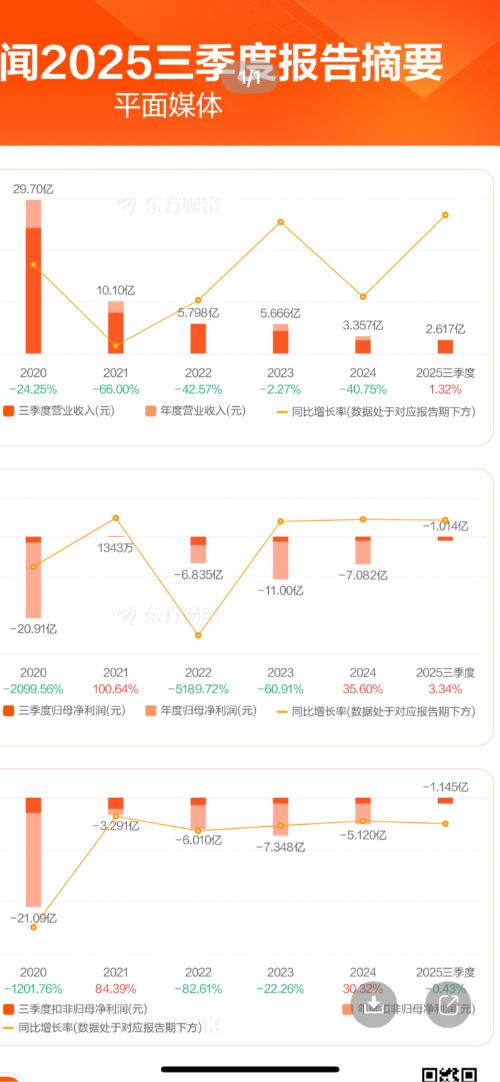 $ST华闻(SZ000793)$从ST华闻2025三季报来看,单季度经营呈现显著增长态势。单季度营业总收入同比增长51.27%,环比增长78.32%,一改中报同比-22.53%的下滑态势,营收端实现大幅反弹;单季度归属净利润同比增长43.64%、环比增长45.67%,利润端也同步呈现修复趋势。不过需客观看待,公司整体仍处于亏损状态,归属净利润-1.014亿、扣非净利润-1.145亿,每股经营现金流...