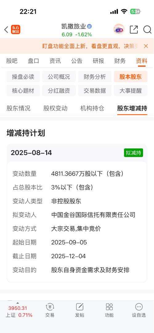 $凯撒旅业(SZ000796)$增持计划没有了?也没有公告啥也没有?
