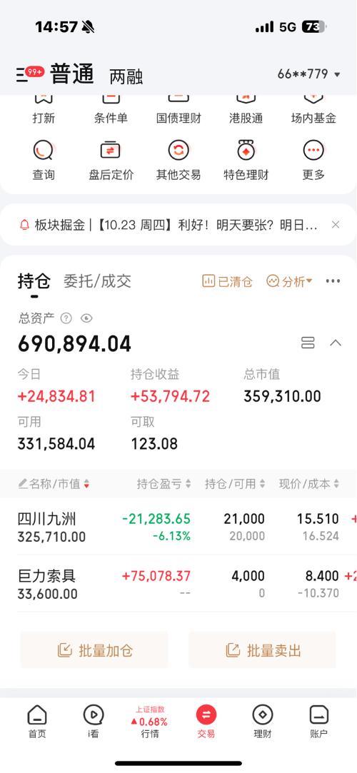 $四川九洲(SZ000801)$老庄出去打野去了。
