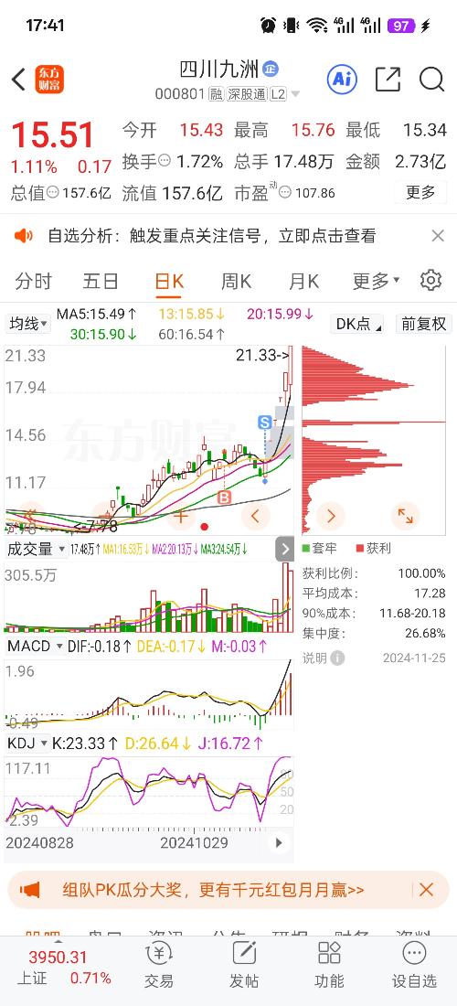 $四川九洲(SZ000801)$思绪拉回到了去年的11月18日,当时两天吃不下饭发誓总不再碰这个股