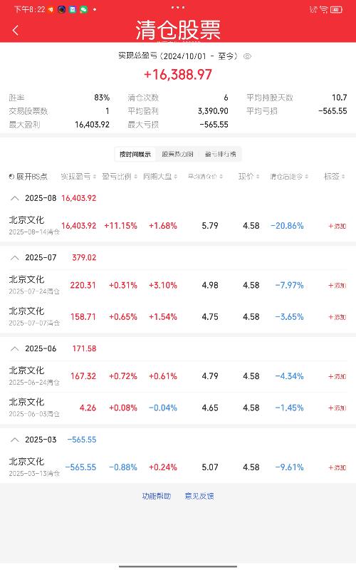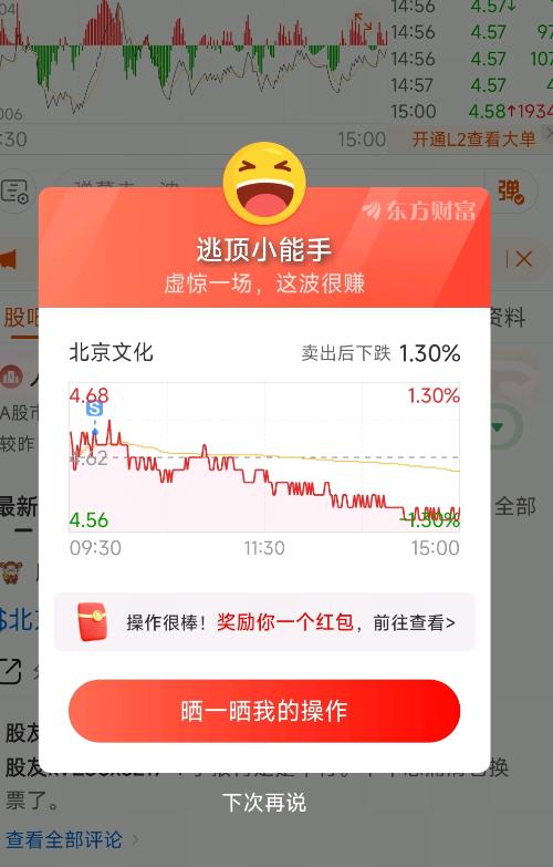 $北京文化(SZ000802)$不好意思清仓了,我上午在高点砸的盘