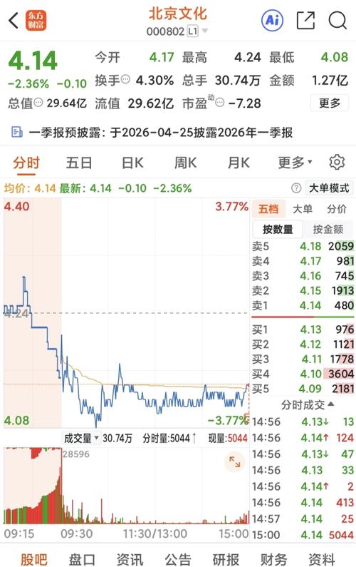 资讯 北京文化(000802.SZ):2026年一季报净利润为-2061.23万元