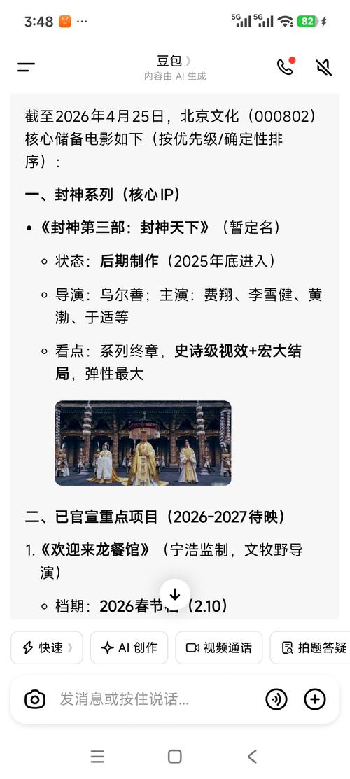 北京文化即将上映国内第一票房保障沈腾主演的《欢迎来龙餐馆》贾冰的《火星计划》更有重磅的AI全新重塑的《封神3》将催生北京文化成为最强影视黑马,更有重组利好预期强烈,看好才4元低价的北京文化有爆发大涨空间,前期超跌,底部刚刚启动,锁仓顺势积极干,这里连扳冲6-7元不要轻易把筹码卖在地板上