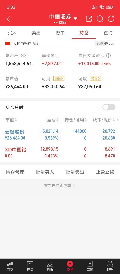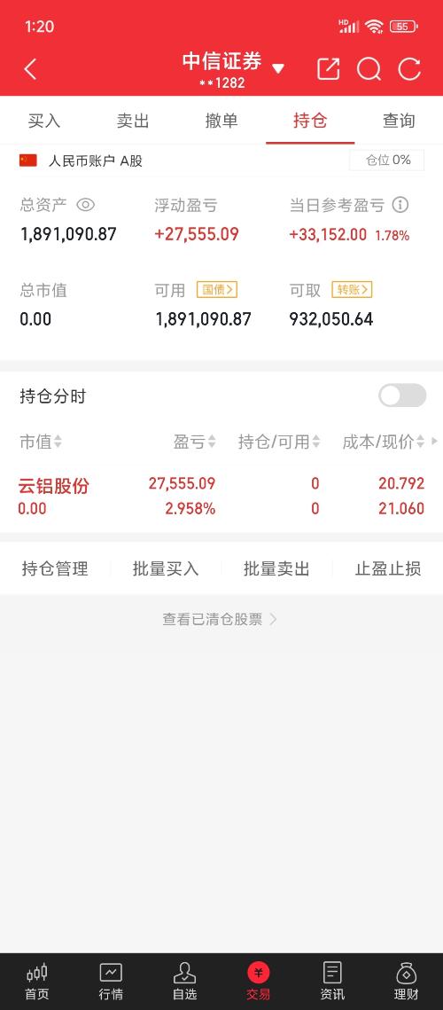 记录一下今天的操作!$云铝股份(SZ000807)$清了