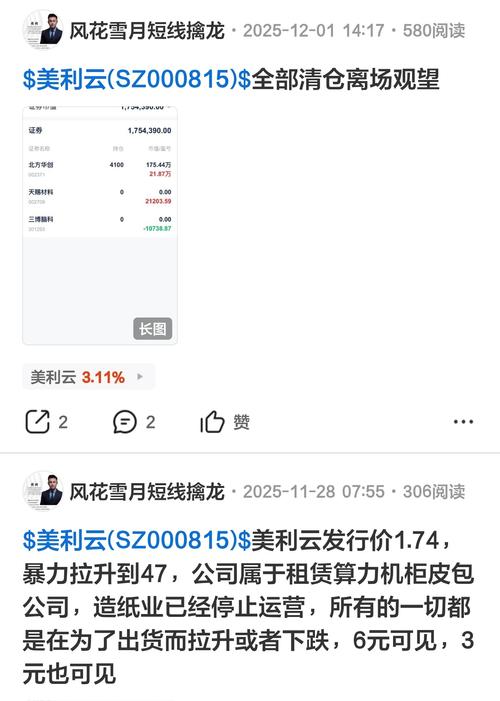 $美利云(SZ000815)$这个短线擒龙又来了,想当初被套了2000块天天唱空。12月初他清仓,然后美丽云就开始涨起来了。