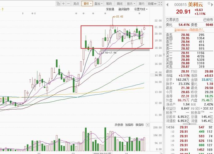 晚间话美利云:今日回顾与明日展望 今日回顾:早盘20.65元开,最高冲至21.30元,最低下探20.50元,最终收盘20.91元,上涨3.11%,单日振幅3.94%,股价全天运行区间集中在20.50-21.30元。全天成交量162.2万手,成交额33.87亿,换手率23.33%,量比1.18,资金活跃度较前一交易日有所提升;委比54.41%,买盘力量稍占优势,内盘成交75.46万手,外盘成交86....