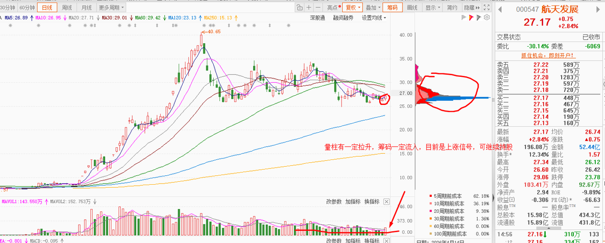 今天放量滞涨啊,明天危险了,调整两天又是大阳