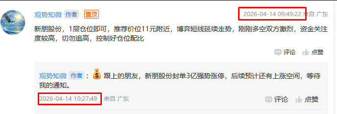 下午好,今天是值得庆祝的日子,早盘刚建仓的新朋股份强势涨停,昨天评论区评论的朋友有一起收获吗?今日大盘全天都是4000上下震荡,尾盘拉升成功突破4000点,若市场持续恢复,新朋股份覃某依然会看好,但外围影响近期不确定性,大盘也充斥多个可能,所以后续具体操作我会盘中通知。此外今天没有建仓新朋股份的朋友也不用灰心,覃某本周还会建仓,目前以有大致方向,想一起的朋友可查看下方图片评论888. 一、大盘行情...