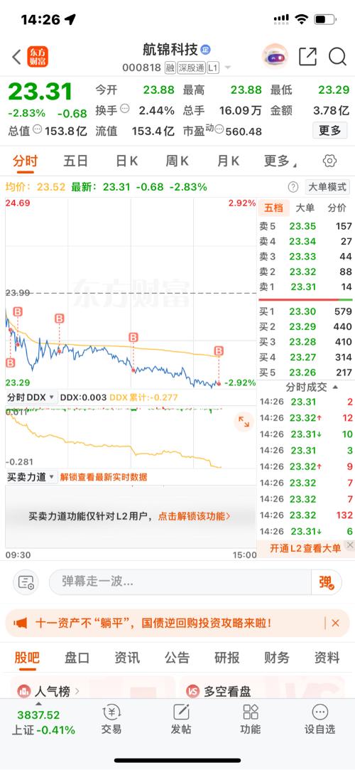 机灵的武曦蕊 更新于 10-31 17:16 88次浏览 $航锦科技(SZ000818)$这超盘手今天怎么回事 2赞