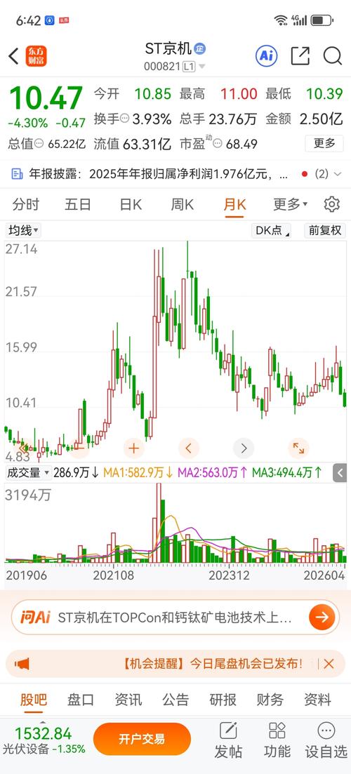 $ST京机(SZ000821)$咱们的大A说不清楚是牛市还是熊市。有些股翻了好几倍,风光储中的储能和风电有很多几倍的涨。光伏比较惨。京机还是盈利卖铲子的光伏股,搞不懂为何如此大跌
