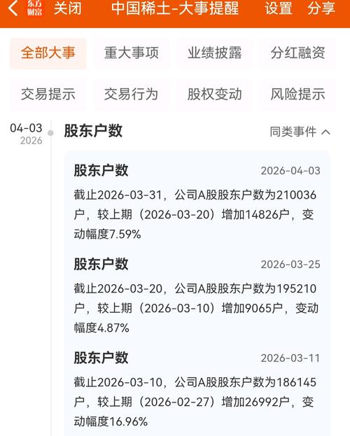 资讯 中国稀土:截至3月10日最新股东户数18.61万户,较上期增加16.96%