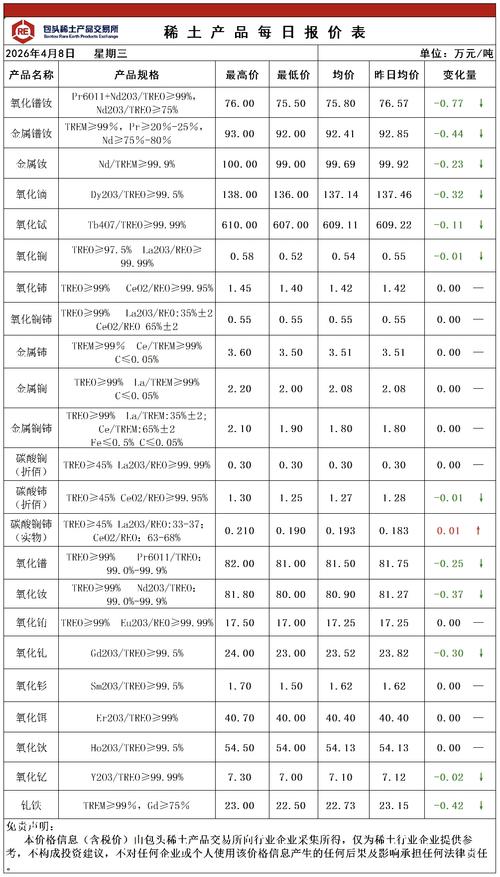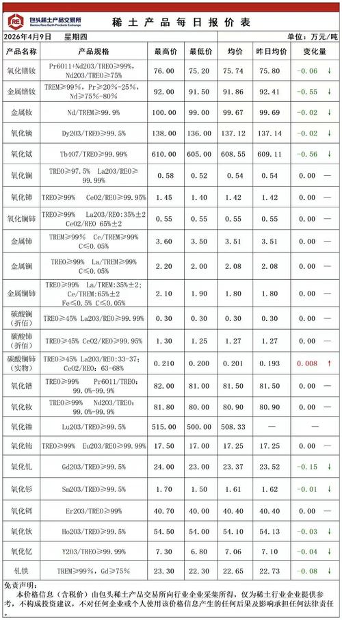 4月9日,稀土现货价格继续全线降价