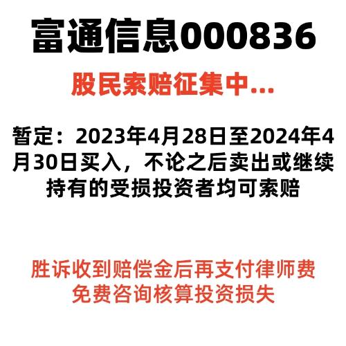 $ST富通(SZ000836)$2023年04月28日至2024年04月30日(含)期间有买入且在2024年04月30日后卖出或继续持有的受损投资者可联系索赔@索赔倒计时