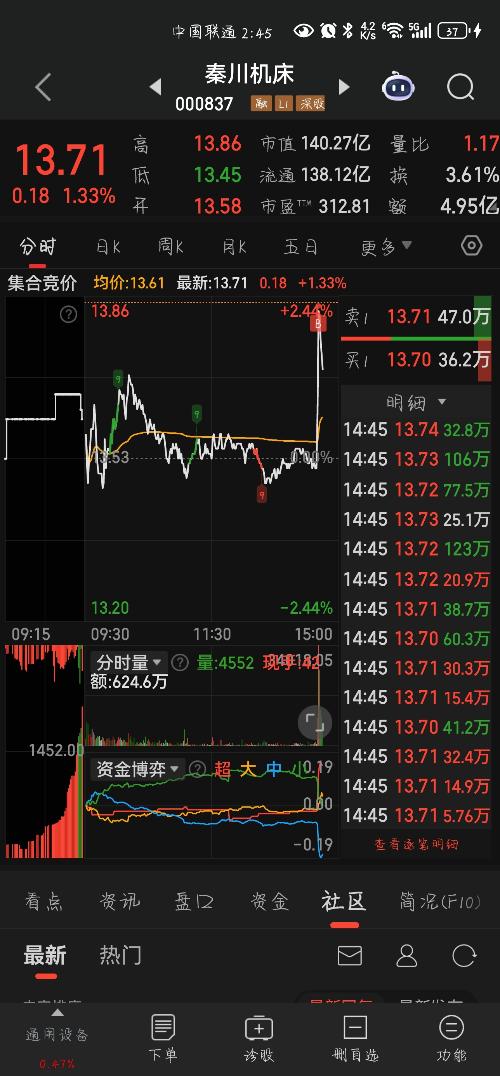 贪婪的韭菜根 更新于 10-31 15:00 52次浏览 $秦川机床(SZ000837)$我还是继续装死吧 14