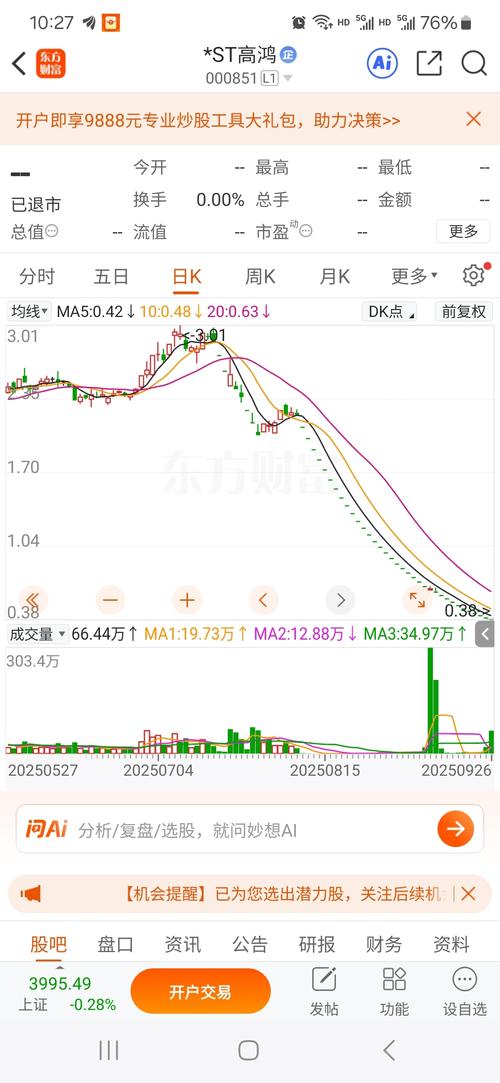 $*ST高鸿(SZ000851)$退市前0.6元多成交两天成交量都到500万手了。成交量这么大难道开板就是为了亏钱给散户想卖的都卖出去吗?这个主力进来就是为了亏钱吗?里面还有条龙在躺在里面还没动。量够动力足后面就走得远。。。。
